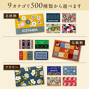 値段は少し高くなりましたが、自宅玄関のイメージにあったデザインを、自分で選び、名前を入れた、ひとつしかないマットです。