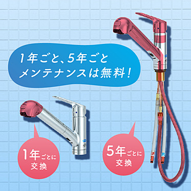 一年に一度、蛇口も新しい物が届くと喜んでいましたが、我が家は請求しないと届きません。交換時期より早くてもカートリッジ交換の時には一緒に届けて頂きたい。