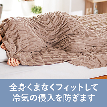 一枚で暖かいし、身体にフィットして良いです。おもしろかったのが、こどもが朝起きたくなくて綿毛布を頭までかぶったら、くっきり身体の形にフィットしてどんな体勢なのかよくわかったことです。首回りもシャーリングがきいているので冷気が入ってくることはなく、軽いので寝やすかったです。ダブルがあればこどもと一緒に入れるので、より良いかなと思います。(ダスキンスタッフ投稿)