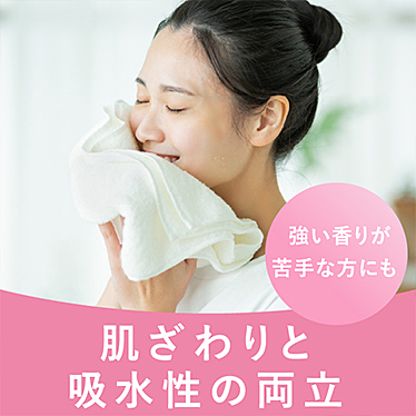 柔軟剤のCMって、香りかふわふわ感や除菌をうたっているのがほとんどですよね。吸水力を押し出している商品って無い気がしますが、ダスキンの柔軟剤は、吸水力が抜群で、汗やシャワー回数の多い季節にピッタリの商品だと感じます。(もちろんそれ以外の季節も)香りも残りにくいので、息子にも好評です。プッシュボトルも簡単便利に使用してます!!(ダスキンスタッフ投稿)