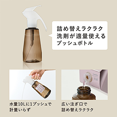 市販の物より匂いがきつくなく優しい仕上がり感がいいのですが、プッシュボトルが洗剤と同じなので、洗剤の色とシールで区別するしかないのが残念です。