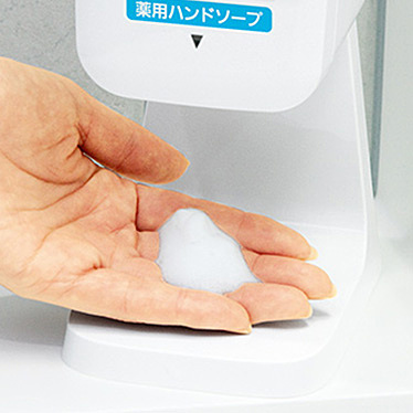 手を近づけるだけで、センサーが反応してふわっと泡が出てきます。