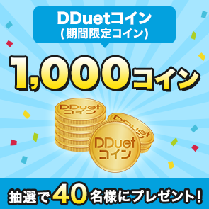 • 【200ポイント消費】DDuetコイン(期間限定コイン)1,000コインを抽選で40名様にプレゼント!